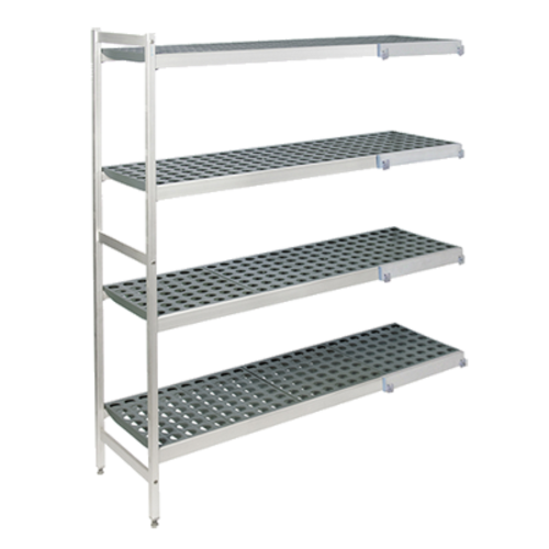 (6611/R1) Fermostock® Shelving Unit Corner Expansion Kit, 4-tier, 66"H, 38"W x 22"D, 800 lbs. max weight per shelf, includes (1) upright & (4) angle connections, -40° to 140°F (-40° to 60°C) operating temperature range, adjustable composite feet, tool free assembly, removable polymer inserts (dishwasher safe to 212°F), 20 micron deep anodized aluminum, NSF (Made in France)