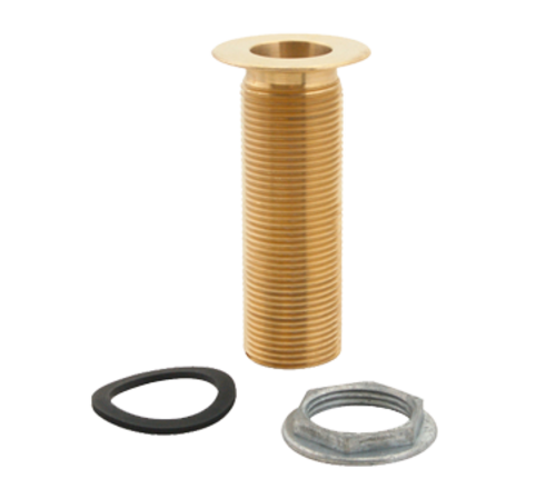 Heavy Cast Drain Assembly, 1" NPS drain size, 2" flange, 4"L, includes: lock nut & washer, brass