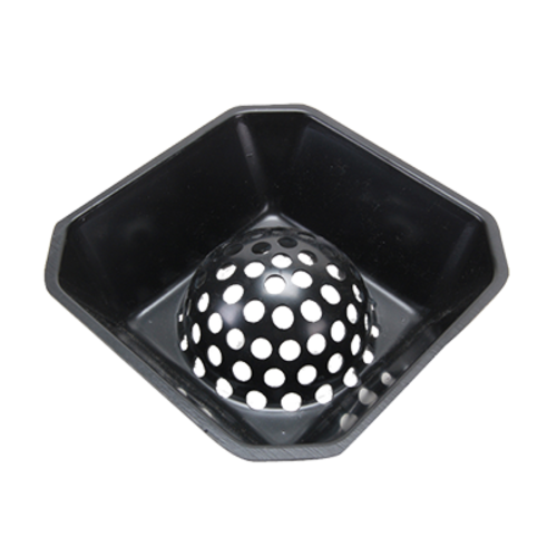 Dome Dish Floor Drain Strainer, 7" square, 2" deep, heavy duty plastic