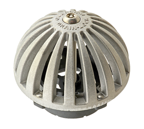 Guardian™ Drain Lock, 3-1/2" OD, fits 3" dia. floor drain, dome shape, aluminum dome, plastic collar