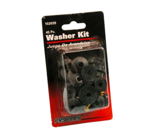 Faucet Washer Kit, contains (36) assorted flat & beveled neoprene washers & (9) screws