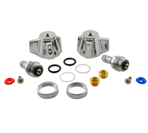 Faucet Repair Kit, commercial-duty, full-turn, includes (2) handles, (2) stems, (2) seats, (2) seat washers, (2) washers, screw, bonnets, spout O-rings, & stem O-rings, for hand sink wall faucets, lead free
