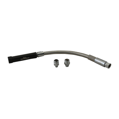 Encore® Pre-Rinse Hose, 20"L, includes O-ring, one 7/8" -20 THD x 1/4" NPT adaptor, and (1) 7/8" -20 THD x 3/8" NPT adaptor, black plastic handle, stainless steel outer casing, Santoprene® thermoplastic rubber core