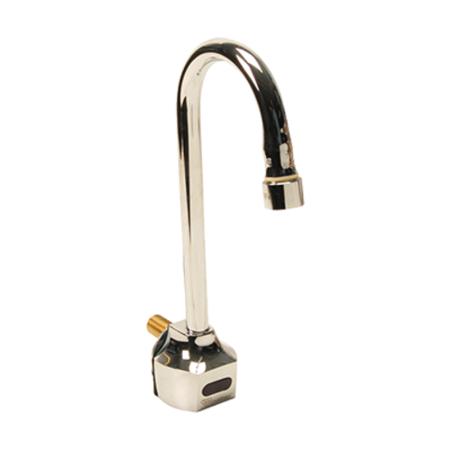 ChekPoint™ Sensor Faucet, wall mounted gooseneck, 120vAC/24VAC, transformer plug-in, ADA compliant, chrome-plated brass, splash resistant circuit control module, sensor range adjustable screw, LED ind. light, filtered solenoid valve with serviceable, T&S Brass
