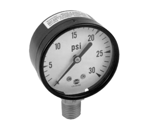 Pressure Gauge, 0 to 60 psi range, bottom mount, 2" dial, 1/4" NPT male