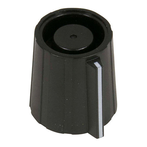 Power Saver Knob, 15/16"L x 3/4"OD, flat left in off position, white indicator line, .200" D-stem, plastic, black (for rotary switch manufactured after 11/2001) (Star 2R-200769, fits QCS-1, QCS-2, QCS-3, Q1-35C, Q1-350, Q1-500B, Q3-95ARB, RCSE-2-1200BK, RCS2, RCS3, R2, TCT)