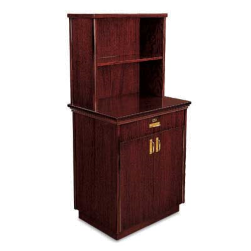 Waiter's Station, wood veneer, top hutch with shelf, large drawer, enclosed bottom section with shelves & doors, solid wood molding