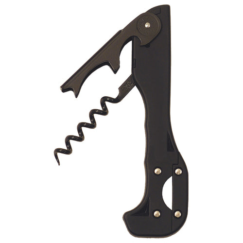 Boomerang™ Waiter's Corkscrew, two-step, 5-1/8" overall length x 1-7/16"H, non-stick spiral, Soft-Touch rubberized handle, patented spring-loaded floating axis design & foilkut system, black, Made in Italy (premium carded)