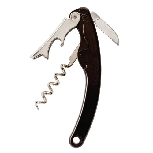 Crescent™ Waiter's Corkscrew, 5" overall length, spiral, nickel plated serrated blade, black (bulk pack)