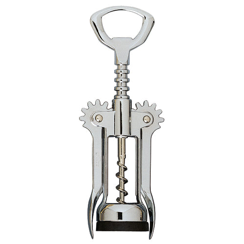 Wing Corkscrew, 6-5/8" overall length, auger spiral, with bottle cap opener, expanded bottle base, chrome plated, silver, Made in Italy (bulk pack)