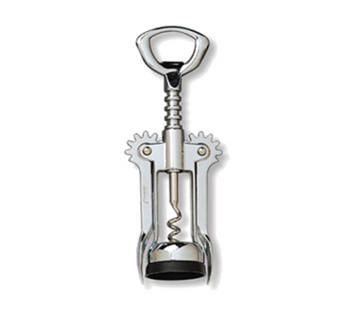 Wing Corkscrew, 6-5/8" overall length, open spiral, with bottle cap opener, expanded bottle base, chrome plated, silver, Made in Italy (retail box)