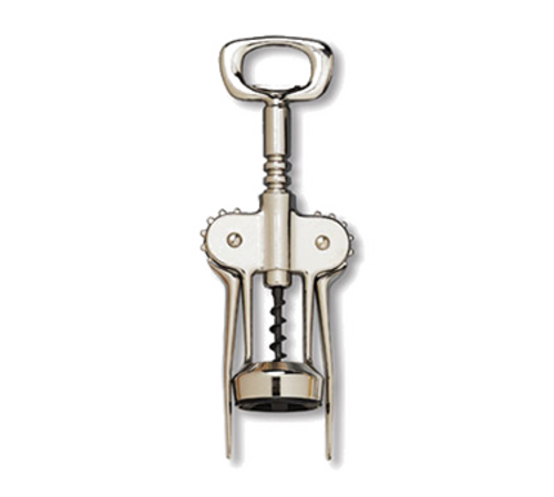 Deluxe Wing Corkscrew, 8-1/2" overall length, black auger spiral, with bottle cap opener, chrome plated, silver, Made in Italy (retail box)
