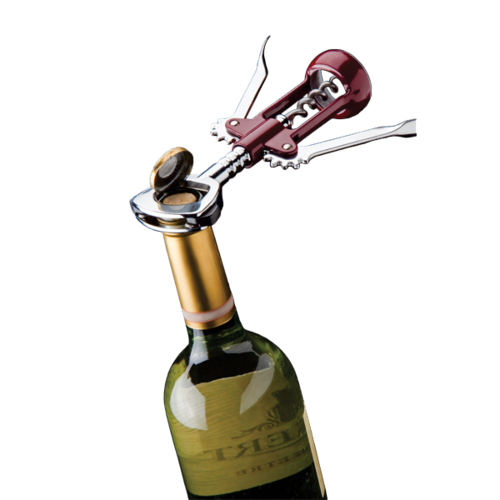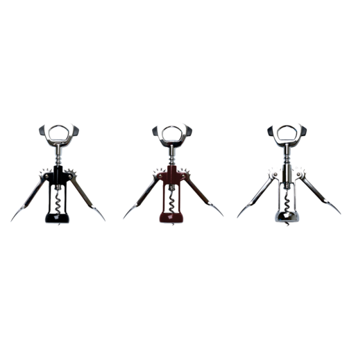 Ultimo™ Wing Corkscrew, 7-1/4" overall length, open spiral, with bottle cap opener, foil cutter, chrome plated, enameled exterior, Made in Italy (premium carded)