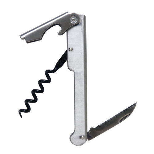 Deluc Waiter's Corkscrew, 4-1/2" overall length, non-stick spiral, 2" serrated blade, stainless steel, Made in France (factory box)