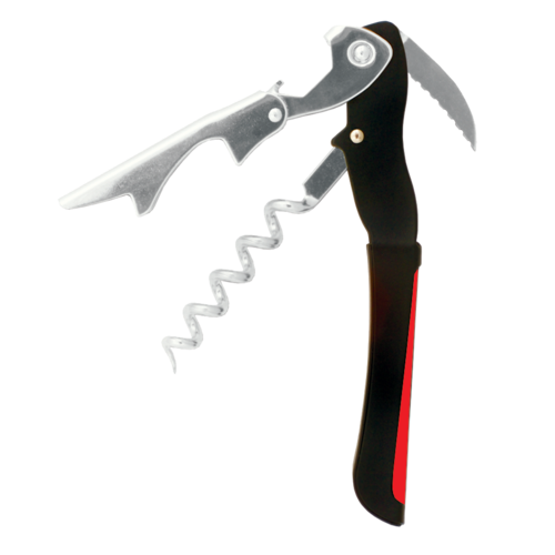 Gulliver Waiter's Corkscrew, two-step, 4-3/4" overall length, curved, nickel plated spiral, serrated blade, 1-1/8" extender arm, double lever, bottle cap opener, Made in Italy (carded)
