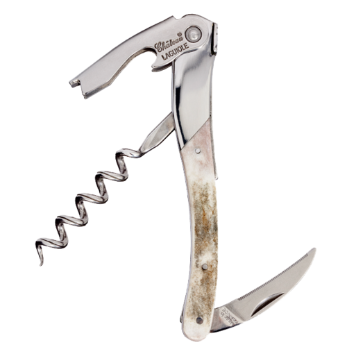 Chateau Laguiole® Waiter's Corkscrew, 4-1/2"L, spiral, serrated blade, reindeer wood handle, includes: blue leather pouch, (Andreas Larsson) (factory box)