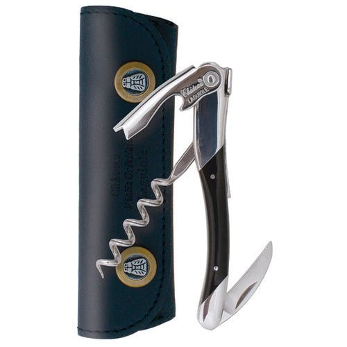 Chateau Laguiole® Waiter's Corkscrew, 4-1/2"L, spiral, serrated blade, ebony handle, includes: leather pouch, Made in France (factory box)