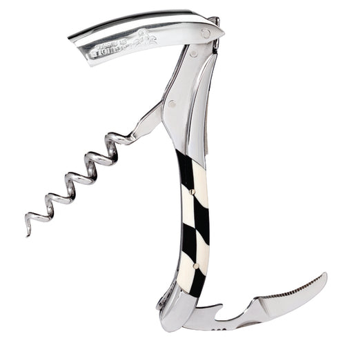 Laguiole en Aubrac™ Waiter's Corkscrew, 4-3/4" overall length, cone-shaped spiral, serrated blade & bottle opener combo, ebony wood/mammoth ivory handle, includes: 6"W x 2-1/2"D x 1-1/2"H wood box, with black finish, Made in France (factory box)