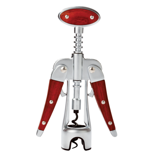Laguiole Deluxe Corkscrew, 6-1/4" overall length, non-stick black open spiral, with bottle cap opener, wood inlaid handles, Made in Italy (factory box)