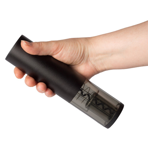 Robust-Pull™ Electric Corkscrew, automatic, 7-1/4"H, push top button, incandescent blue light, open spiral, foil cutter in base, rechargeable plug-in, black (retail box)