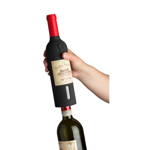 Electric Corkscrew, 10-1/4"H, up/down switch, wine bottle shape, foil cutter, up to 30 bottles in one charge, rechargeable with adapter, matte finish (retail box)
