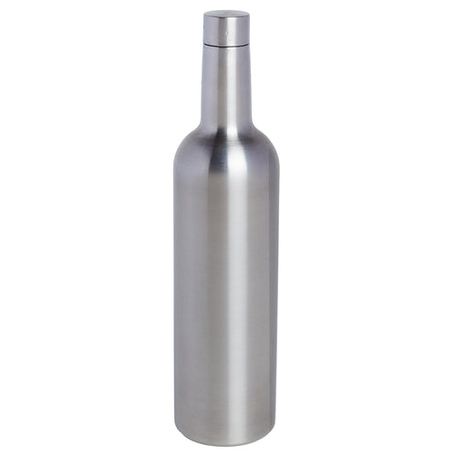 Wine Bottle Flask, 25-1/3 oz. (750ml), 3" dia. x 12-3/8"H, screw top, non-toxic, up to 25 hour cold retention, up to 12 hour heat retention, sweat proof, vacuum sealed triple wall insulation, 18/8 stainless steel (bulk pack)