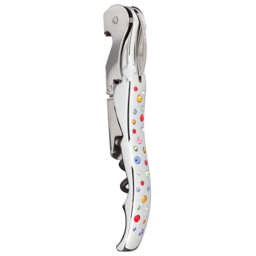 Pulltap's® Evolution Waiter's Corkscrew, two-step, 4-5/8" overall length, with blade, non-stick spiral, (26) multi-colored rainbow Swarovski® crystals imbedded into handle, chrome plated, includes: white leatherette jeweler's box, Made in Spain (retail box)