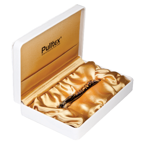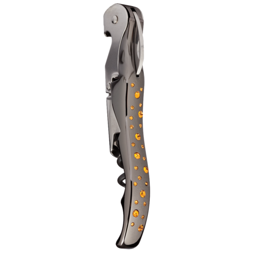 Pulltap's® Evolution Waiter's Corkscrew, two-step, 4-5/8" overall length, with blade, non-stick spiral, (26) amber Swarovski® crystals imbedded into handle, chrome plated, includes: white leatherette jeweler's box, Made in Spain (retail box)