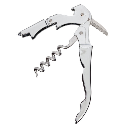 Duo-Lever™ Waiter's Corkscrew, 4-3/4" overall length, chrome plated spiral, stainless steel boot lever & serrated blade, capsule cutter, handle, chrome plated exterior (factory box)