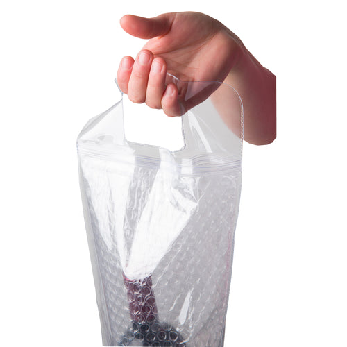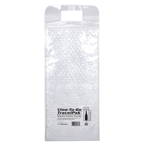 TravelPak™ Vino-to-Go™ Wine/Champagne Bottle Bag, (1) bottle capacity, 8"W x 18"H, with handle, reusable, zip lock closure, clear (bulk pack)