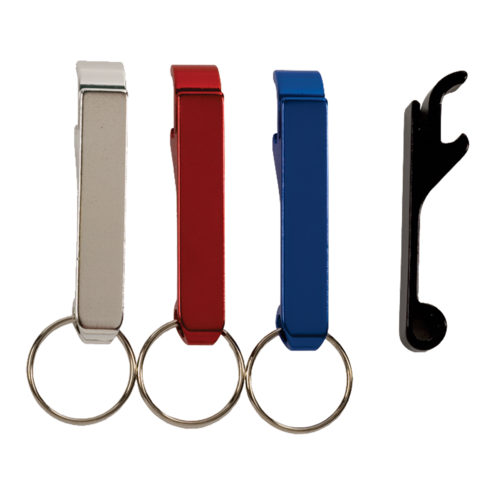 Bottle/Can Opener, 2-1/2" long, 1" dia. key ring, aluminum, anodized finish (premium carded)
