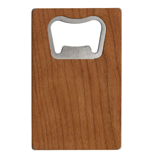Credit Card Opener, 3-1/2” x 2-1/8”, 2mm thick, stainless steel, cherry wood laminated