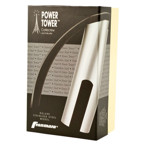 Power Tower™ Corkscrew, 2-1/4" dia. x 7-5/8"H", plastic foil cutter, replacement non-stick spiral set in velvet tray, champagne color exterior (retail box)
