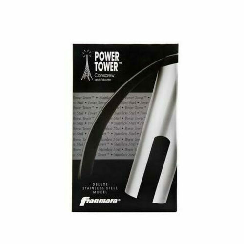 Power Tower™ Deluxe Corkscrew, 2-1/4" dia. x 7-5/8"H", nickel plated foil cutter, replacement non-stick spiral set in velvet tray, stainless steel exterior (retail box)