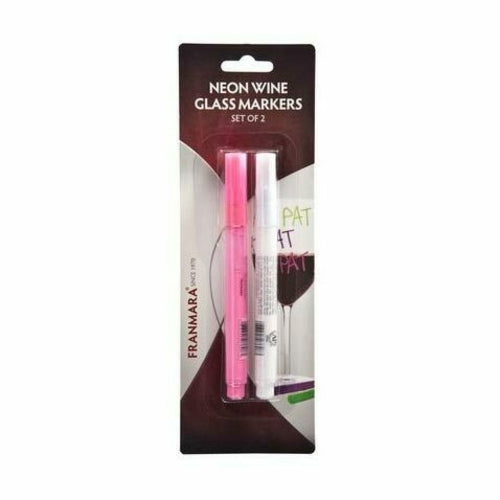 Wine Glass Marker Set, 2-piece, non-toxic, neon, includes: (1) white & (1) pink (1 of each color per set) (premium carded)