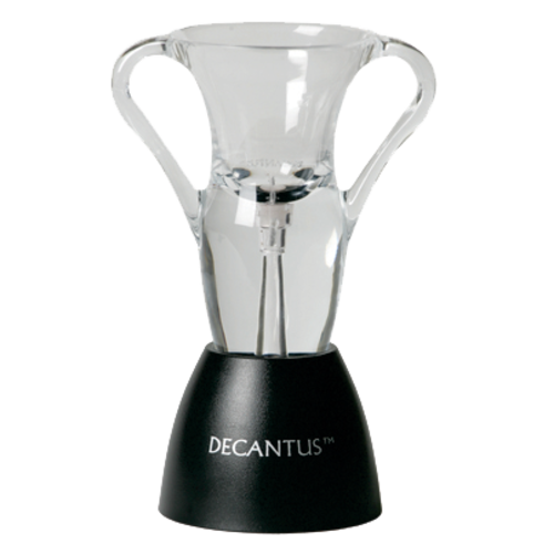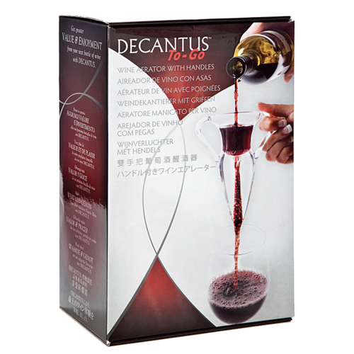 Decantus™ To Go Wine Aerator Set, includes: (1) 5" H deluxe aerator with double handles, (1) plastic table stand, (1) black storage pouch (retail box)
