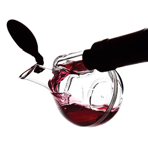Vino Dose™ Wine Aerator/Dispenser, 4 oz., 5-1/4" x 3-3/4"H, tilted, 1/2 - 4 oz. fill line range, removable bottom, acrylic, clear (retail box)
