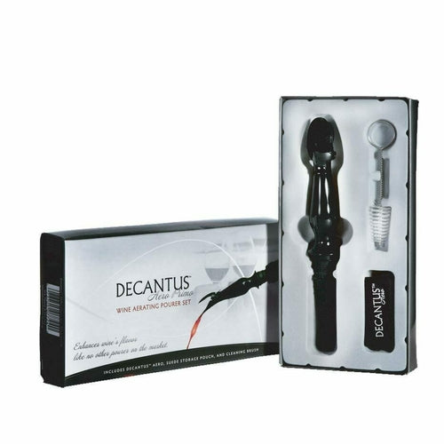 Decantus™ Aero Primo Wine Aerator Set, includes: (1) aerator pourer, (1) cleaning brush, (1) black storage pouch, black (retail box)