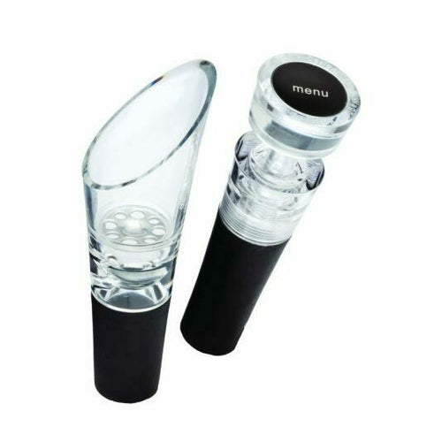 Selection Decanter Pourer & Stopper Set, includes: (1) 3-3/4" long, narrow neck (venturi pipe), stainless screen, plastic, pourer, (1) 3-1/8" long stopper, clear (retail box)