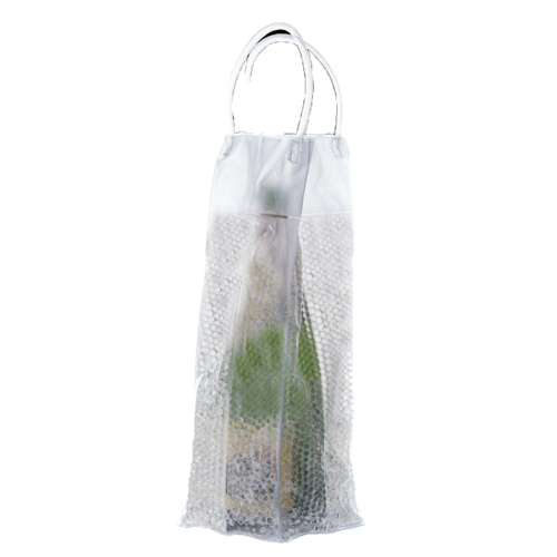 Gel Bead™ Champagne Cooler Bag, (1) bottle capacity, 5-1/2"W (when folded) x 7"H, rectangular, collapsible, freezable gel beads on 4-sides, 4" tubular handles welded, clear (bulk pack)