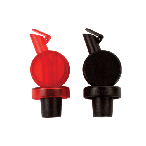 Liquor Bottle Pourer, 3-1/8" long, medium speed, auto-close/open lid, with collar, black rubber insert, plastic (bulk pack)