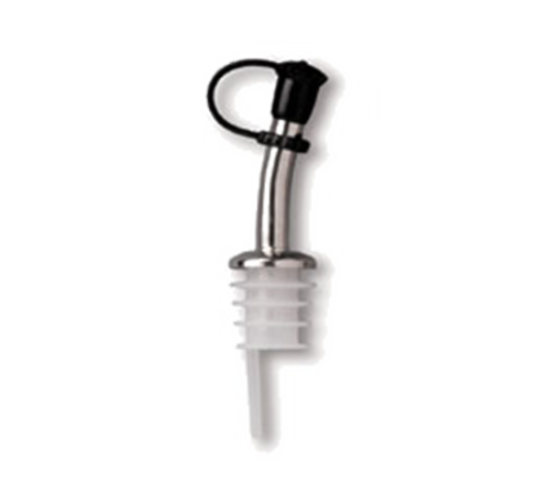 Liquor Bottle Pourer, 4-1/16" long, without collar, black cap, clear plastic cork, stainless steel spout (bulk pack)