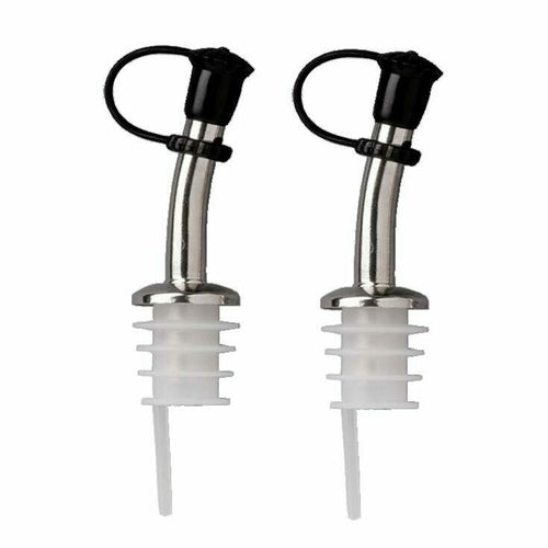 Liquor Bottle Pourer, 4-1/16" long, without collar, black cap, clear plastic cork, stainless steel, 2-per card (premium carded)