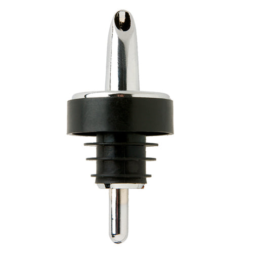 Liquor Bottle Pourer, 3" long, medium speed, with black collar & plastic cork, chromed plastic (bulk pack)