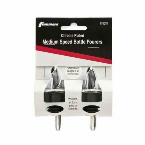 Liquor Bottle Pourer, 3" long, medium speed, with black collar & plastic cork, chromed plastic (8017), 2-per card (premium carded)