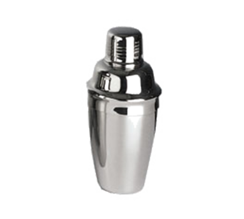 Lustrum™ Premium Quality Cocktail Shaker Set, 3-piece, includes: (1) 8 oz. 2-3/4" dia. x 6"H, round, 1mm thick shaker, (1) strainer, (1) jigger cap, 18/10 stainless steel, high polished finish (retail box)