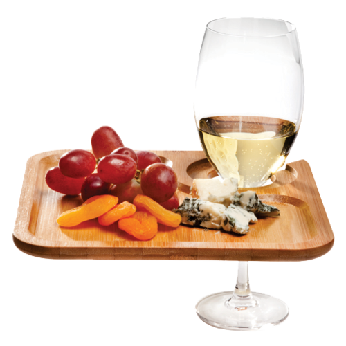 Party Plate™, 8" x 8" x 3/8"H, square, with built-in stemware/beverage holder, washable, reusable, bamboo (bulk pack)