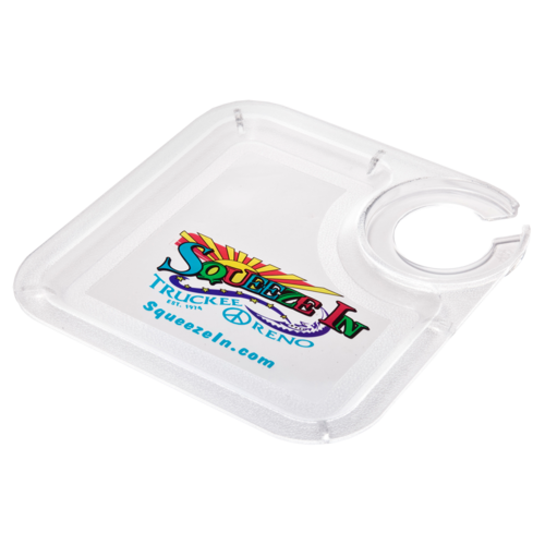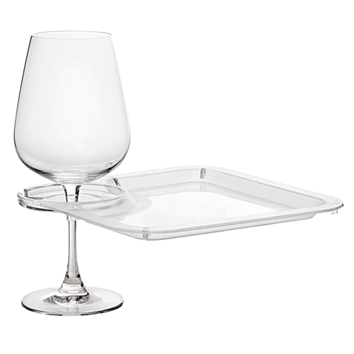 Party Plate™, 8" x 8", square, with built-in stemware holder, plastic, clear (bulk pack)