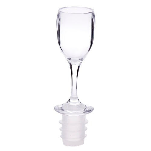 Wine Bottle Stopper, 4"H, wine glass design, top rack dishwasher safe, acrylic top, polypropylene stopper base, clear (bulk pack)