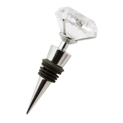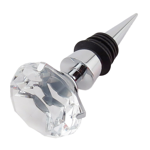 Wine Bottle Stopper, 3-7/8"H, glass crystal top, zinc alloy, chrome plated (factory box)